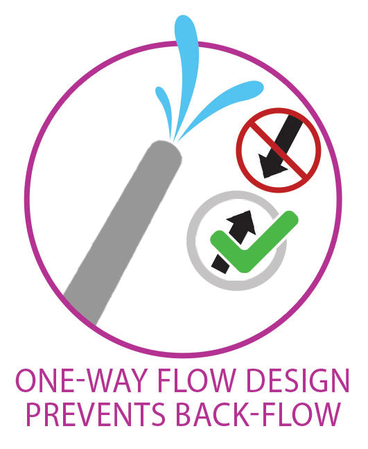 This non-backflow return check valve prevents fluid contamination while the enema is Inverted during cleaning. Fluid in the reservoir can only travel in one direction preventing any unwanted return flow.