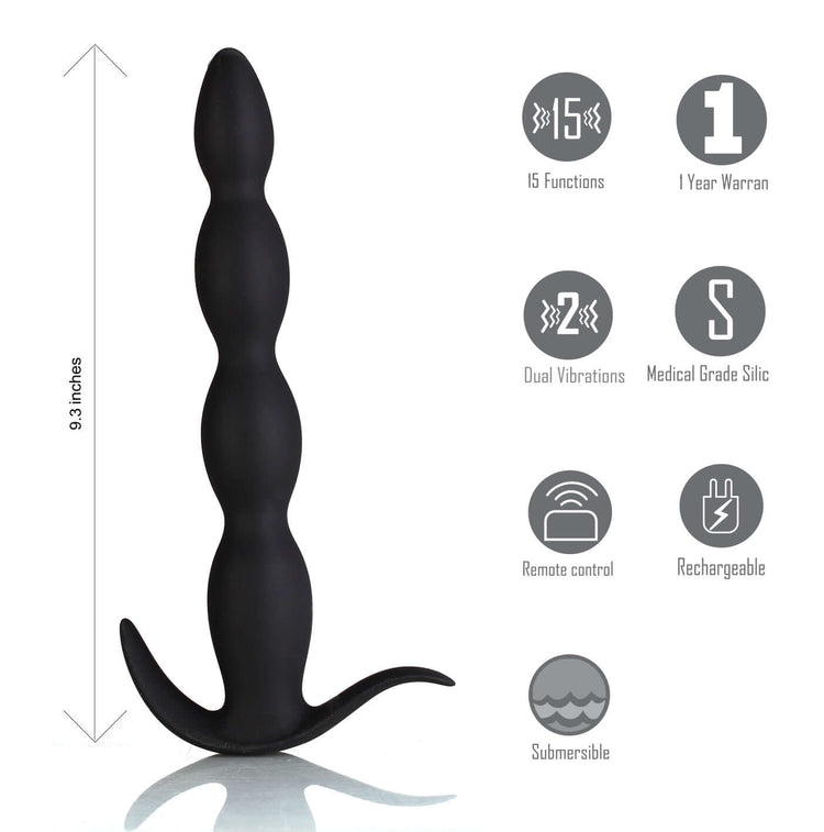 Want to kick your anal play up a notch? The Maia Novelties Mason is a vibrating anal plug that features a lengthy beaded design to provide deep anal stimulation while the 15-function mega motor will take your anal escapades to another level. The included remote control makes the Mason an easy to control anal powerhouse. Fully rechargeable, the Mason includes a rimmed design to prevent over insertion. Mason also provides perineum stimulation. Mason is fully submersible and is coated with 100% body safe medical grade Silicone.