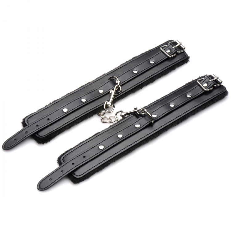 • Faux fur-lined cuffs, collar and blindfold