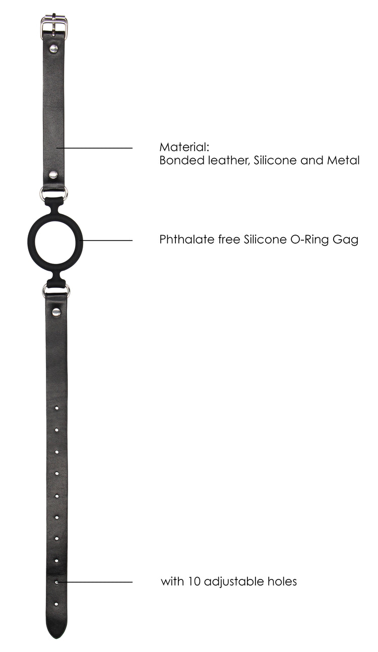 Silicone Ring Gag With Adjustable Bonded Leather Staps - Black