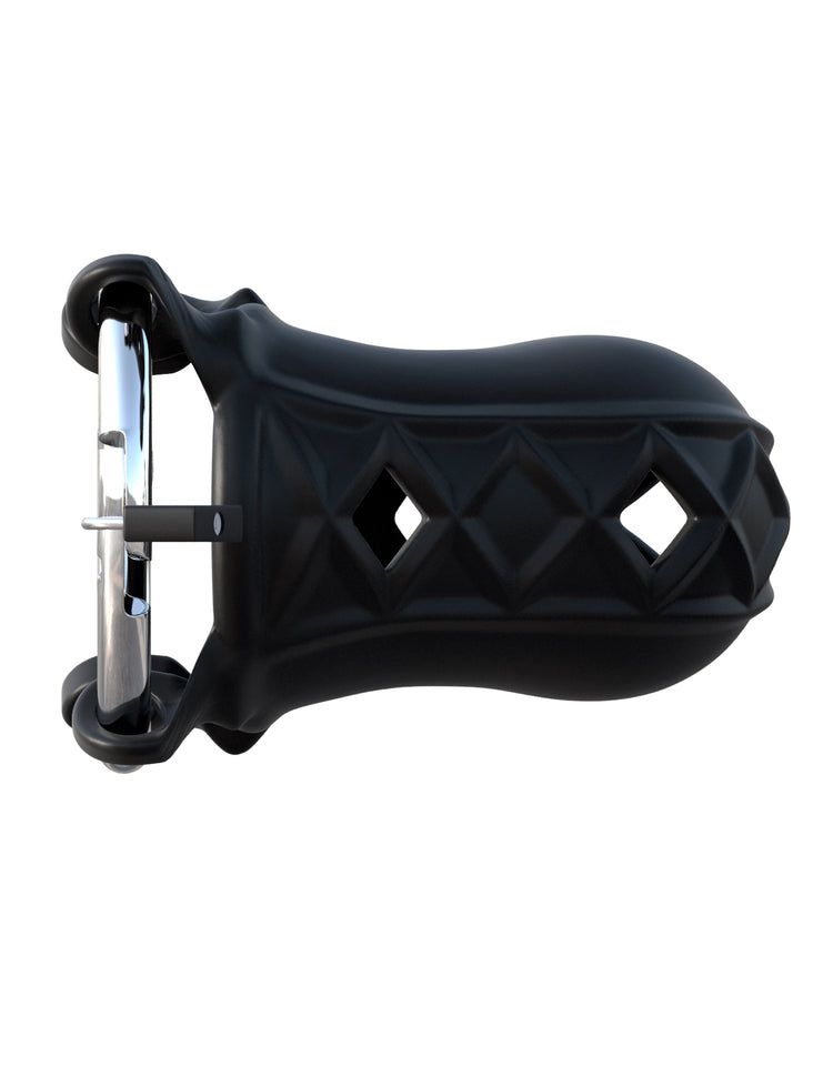 Put your lover on lockdown with the Extreme Silicone Cock Blocker! Fasten the lock, hide the key, and make sure your partner keeps his cock where it belongs! This high-end chastity cage is made from our body-safe, phthalate-free Elite Silicone and is designed for comfortable long-term wear. The chastity device is lightweight, flexible, and breathable, but once the lock is applied, your subject can’t get hard no matter how aroused they are! The Extreme Silicone Cock Blocker features a sturdy stainless steel adjustable ring that wraps around your subject’s entire package, leaving his shaft locked inside the breathable silicone sleeve. With unparalleled comfort, this ventilated silicone chastity cage is the ultimate chastity device for first-timers and serious fetish enthusiasts alike. Enjoy the thrill of locking your lover up, or relinquish control and hand over the keys! The silicone cage is easy to wash, body-safe, and super hygienic. The vent holes allow you to clean your subject’s package while they still wear the cage, and the ring is made from high-grade stainless steel. The silicone sleeve has a small pee-hole to assist urination, and the entire device can be worn under clothing for amazing one-of-a-kind thrills! To install the silicone sleeve onto the metal ring, make sure the metal ring’s opening is facing upwards and slide both pairs of silicone loops onto each side of the ring. Once you’ve looped the silicone sleeve onto the steel ring, choose one of the 3 holes and install one of the locks.