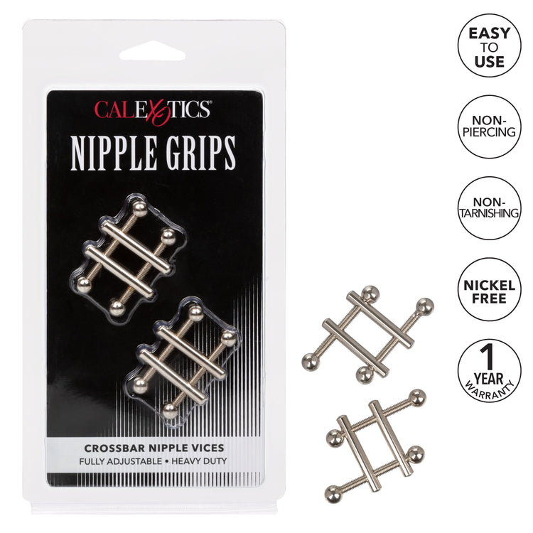 The Nipple Grips Crossbar Nipple Vices are designed for powerful nipple play. Twist the twin screws and allow the dual cross bars to get tighter and tighter on your nipples for an incredibly pleasing sensation.