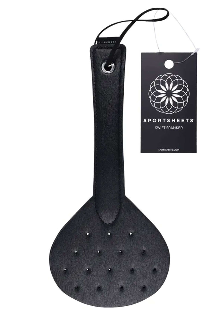 Seize control and ignite fresh excitement with the beguiling sensations and endearing smacks of the Swift Spanker. Perforated with holes scattered across the split tipped edge for reduced resistance and a satisfying smack strong enough to leave dotted patterns across the body. Use it to enact the perfect punishments or for pleasurable pats with swift accuracy to keep your partner on edge with anticipation.