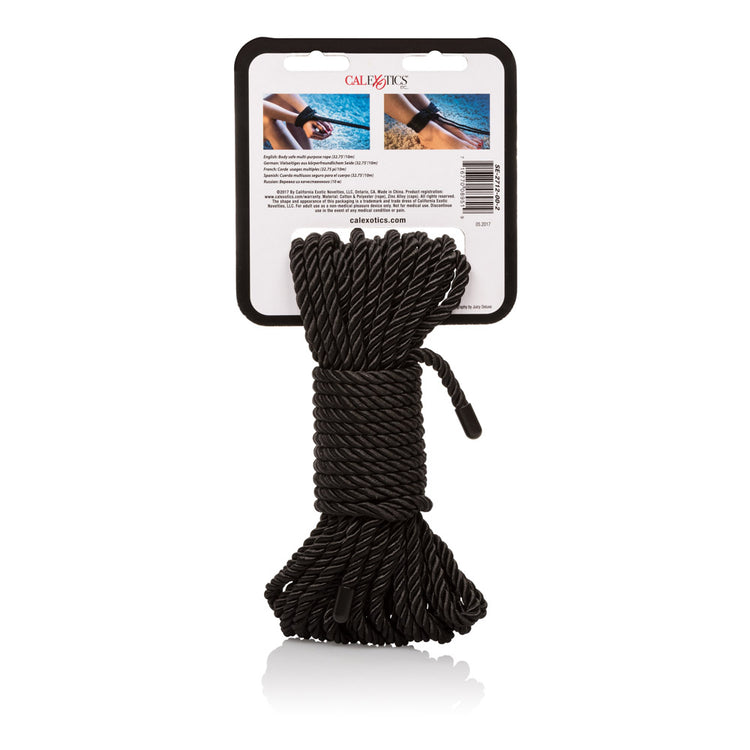 Give into to your wild side and get creative with CalExotics Scandal Rope. The award-winning Scandal collection brings you 32 feet of sensationally silky rope that lets you dive deep into endlessly creative restraint play and bondage sex. Give yourself over to enhanced pleasure and elevated arousal with each wrap of this slender, multi-talented rope. Use to bind wrists, wrap around ankles, create naughty décor or explore uniquely sexy outfits for kinky and fun fetish sex. The silky rope is ideal for couples looking to experiment with Shibari, restraint play and sexual bondage play. Take your fantasies to the next level and get scandalous with the endlessly fun Rope sex toy.