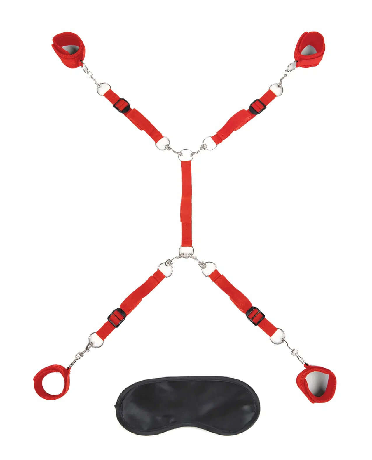 Indulge in the world of sensual exploration and passionate play with the Lux Fetish 7 pc Bed Spreader Restraint System in a seductive red color. This set includes adjustable cuffs, bed spreader straps, and connectors, providing everything you need to create a variety of restraint positions and scenarios. The bed spreader straps are designed for easy installation and compatibility with most bed sizes, allowing for endless possibilities for creative and stimulating play. The sexy red color adds an element of seduction and allure, heightening the senses and setting the stage for a night of passion and desire. Perfect for beginners and experienced enthusiasts alike, the Lux Fetish 7 pc bed spreader restraint system is an essential addition to any collection.