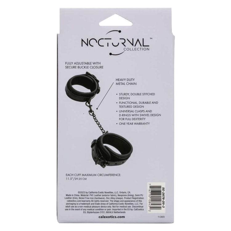 Attention to detail is evident in the double-stitched design, showcasing not only the durability but also the aesthetic appeal of these cuffs. The stitching reinforces the structure, making it both functional and long-lasting. The Nocturnal Collection Ankle Cuffs are crafted to withstand the most passionate of encounters, ensuring they remain a staple in your collection for many nights to come.