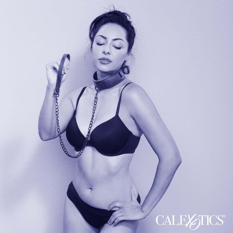 Experience the exquisite blend of elegance and control with the Nocturnal Collection Collar and Leash. This sophisticated set features a sturdy collar, accompanied by a detachable leash, offering versatility in your intimate  moments. The collar is fully adjustable, equipped with a secure buckle closure, ensuring a comfortable and tailored fit for various sizes.