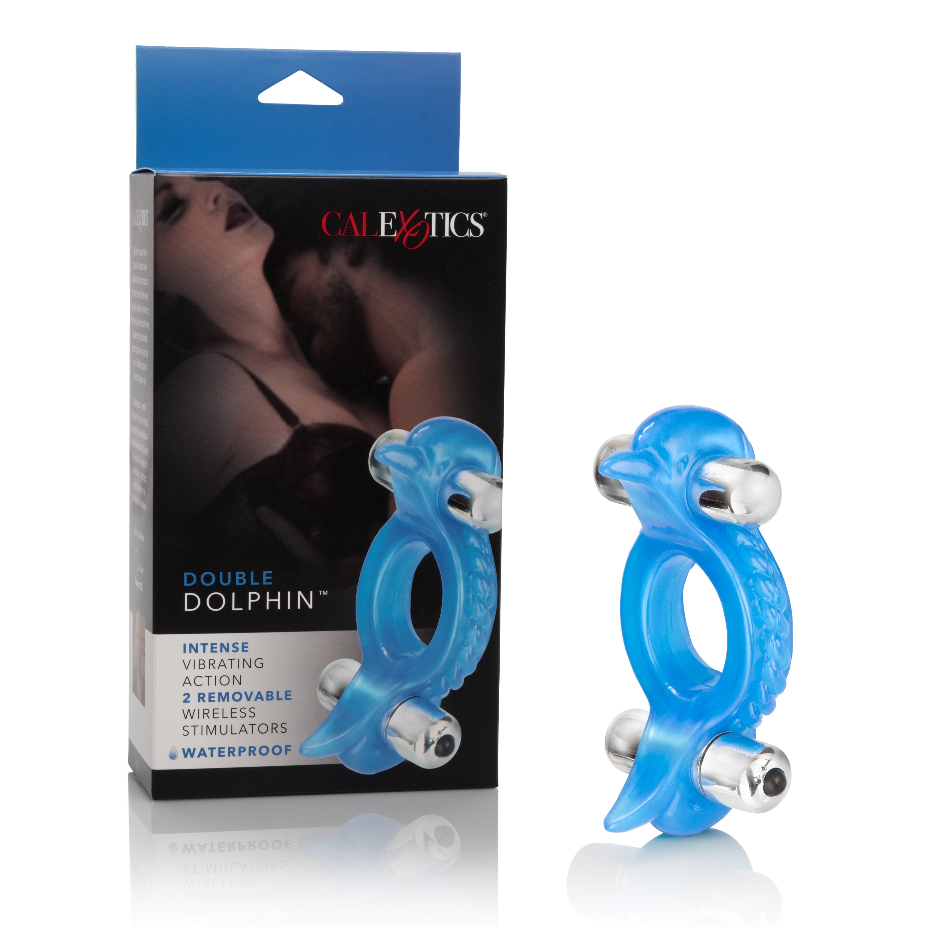 Opulent blue dolphin enhancer is the ultimate in dual action couples arousal Self-contained,hands free, removable stimulators with powerful vibrating sensations PVC (enhancer) ABS with silver plating (stimulators) Batteries included (3 watch, 6 included)