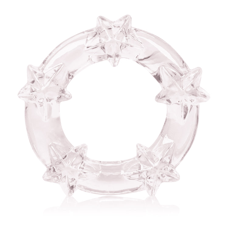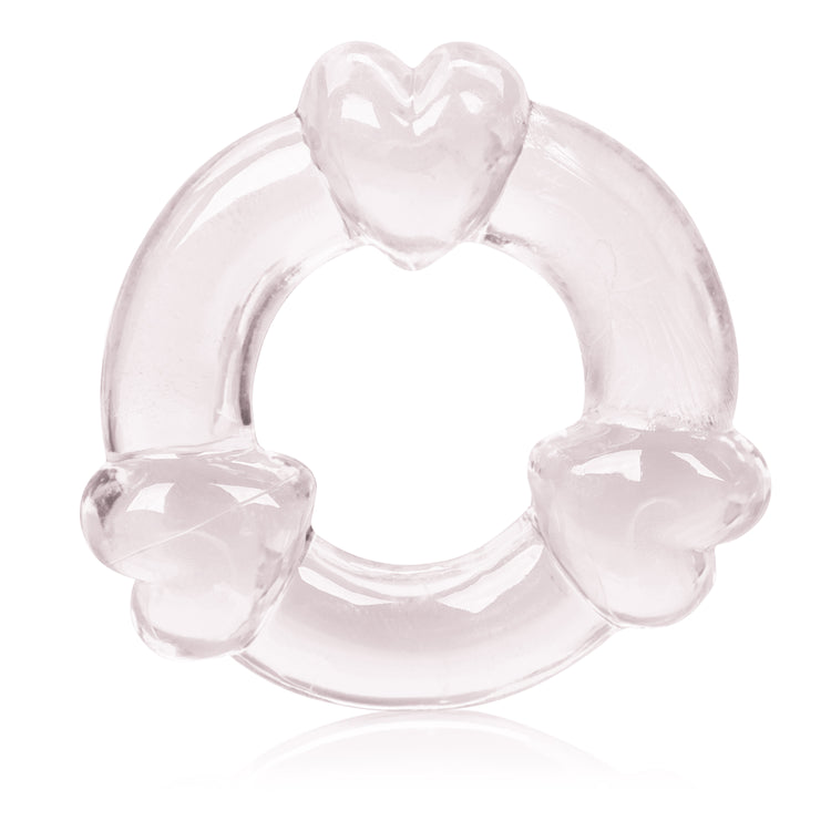 Made from sturdy, soft, smooth, and hygienically superior TPR, these transparent rings are adorned with sensuous heart and star shaped pleasure nodules for enhanced sensitivity and increased stimulation. The 3 tantalizing erection rings are designed to support erection stamina for prolonged performaces. To use, choose your preferred noduled ring and slide it on to the erect penis for a secure fit at the base. Use a quality lubricant for heightened senstaions and mind-blowing enjoyment.