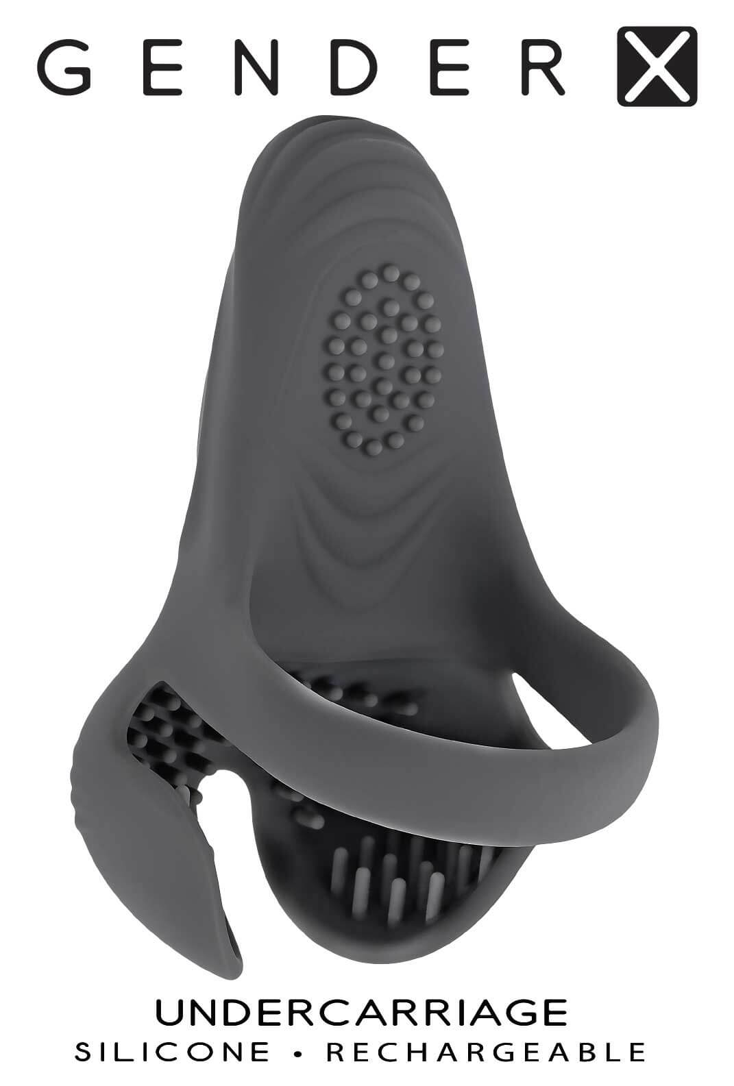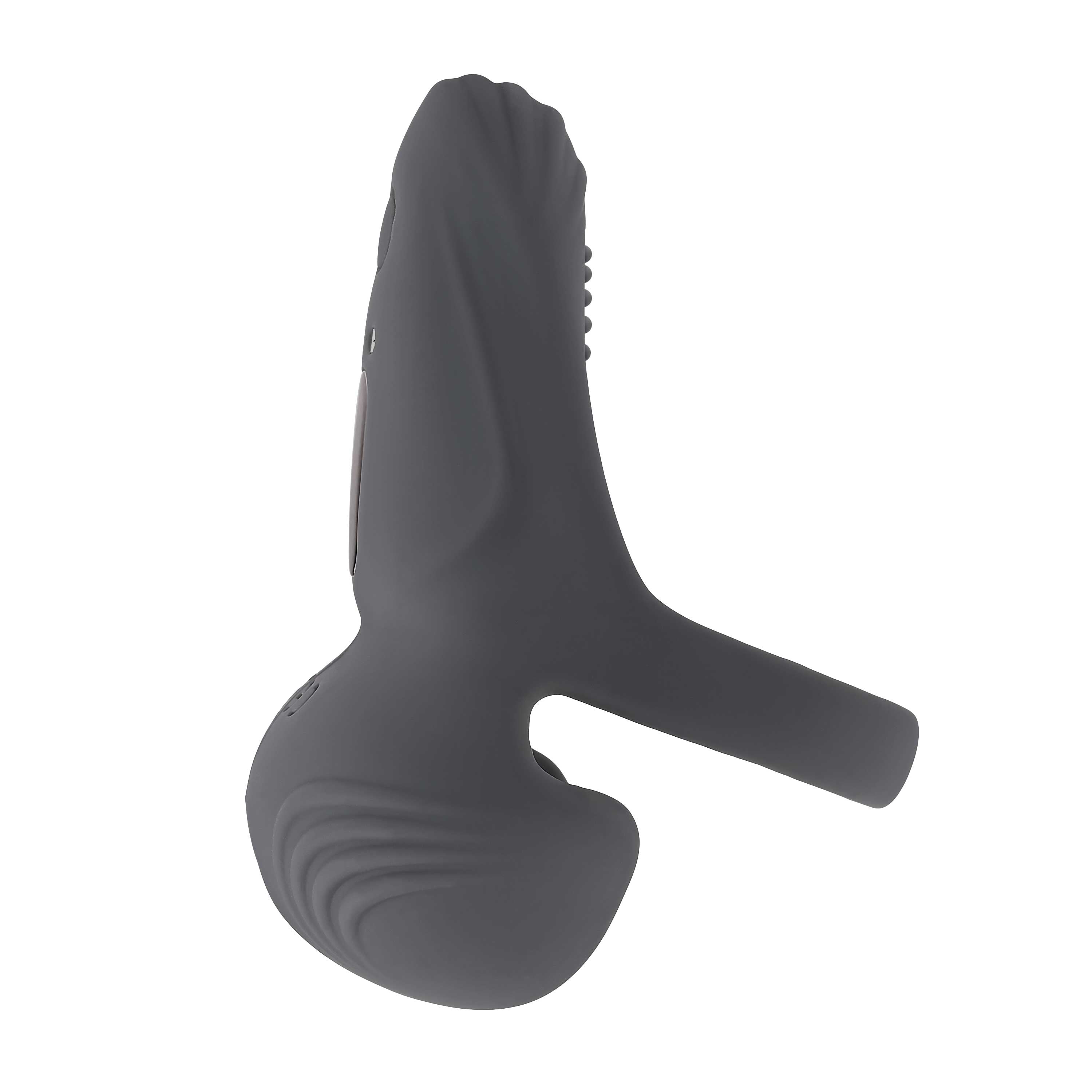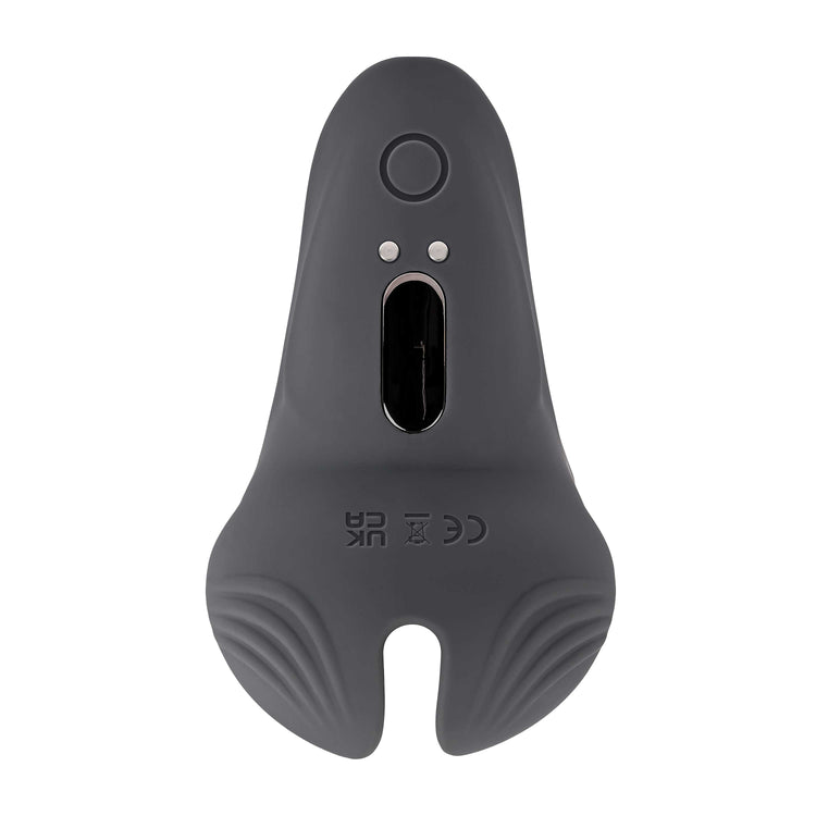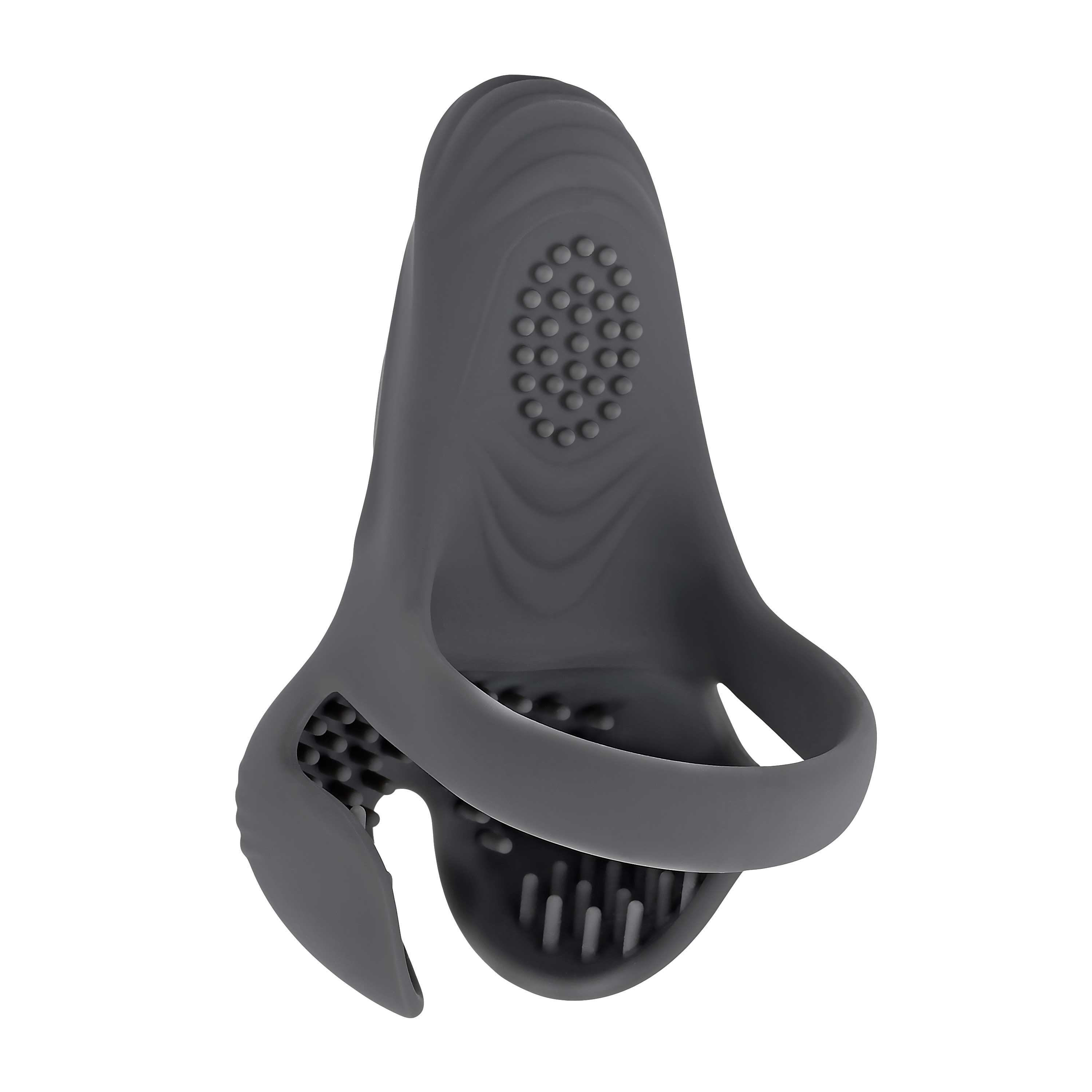 This unique silicone toy has three features that interconnect - a large ring attaches to a hollow double-sided cup on one end and a vibrating wedge shape on the other. Textured and flexible, this harness, hoop & rounded scoop combo offers unique possibilities for playtime pleasure.