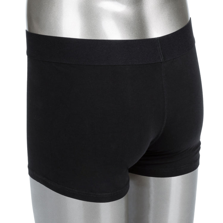 The Remote Control Boxer Brief Set is made for adventurous pleasure seekers, with an extra-comfortable boxer brief paired with a powerfully mini vibrator and discreet wristband controller. The stylish, yet discreet wristband controller makes it easy for you or your lover to control vibration intensity with the touch of a button. Whenever or wherever passion takes you, this passionate min vibrator's 32-foot radius range and 12 intense functions of vibration are ready for playtime. The discreet, form-fitting boxer briefs have 3 internal stimulator pockets for personalized stimulator placement. Made for superior comfort and extended wear, these boxers are made from soft, stretchy fabric with an extra wide waistband.