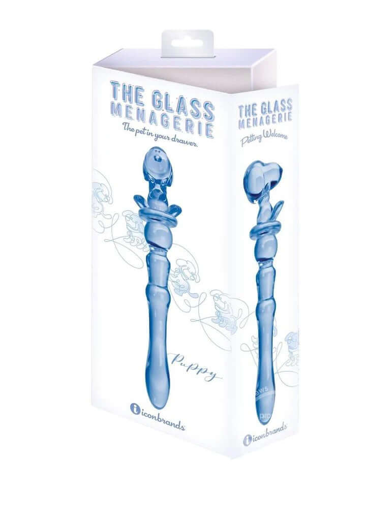 Presenting first glass in beautiful new shapes. Enjoy the crystal clear, clean beauty against your skin, in a most sensuos experience! With a pet on top! Charming full-sized glass dildos with a cute little puppy on top.