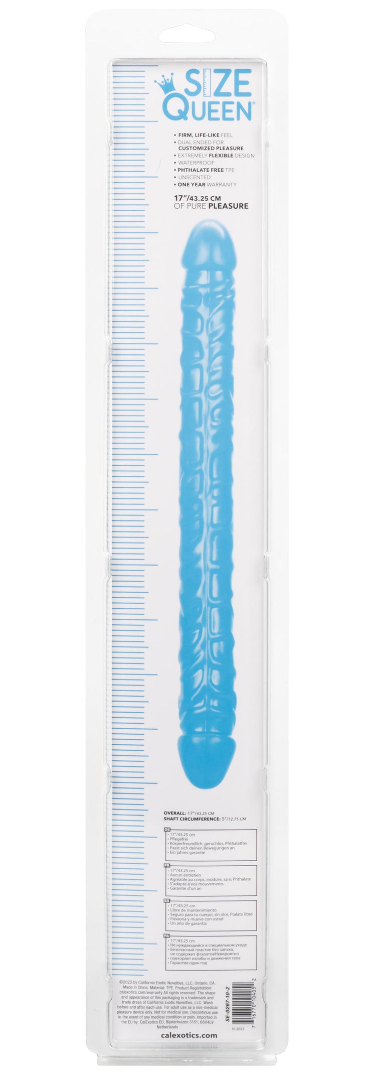 Indulge in your naughtiest fantasies and give yourself over to double penetrating pleasure with the powerful Size Queen 17" (43.25 cm) dong. The daring double ended dong has a 17-inch shaft, multi-directional design, and life-like textured surface.