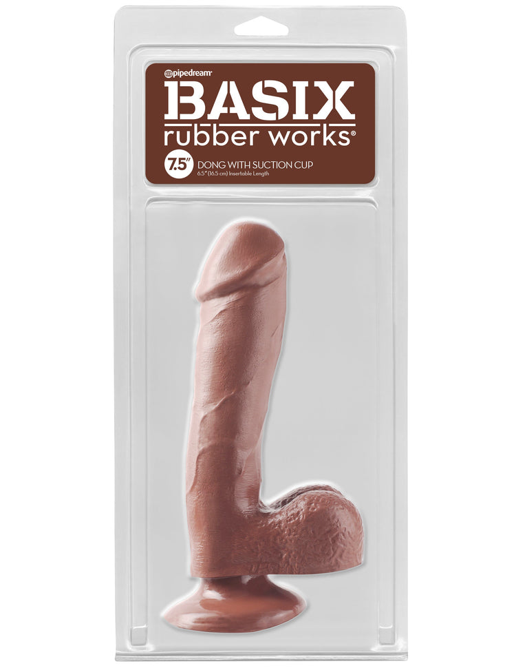 Basix Rubber Works - 7.5 Inch Dong With Suction Cup - Brown