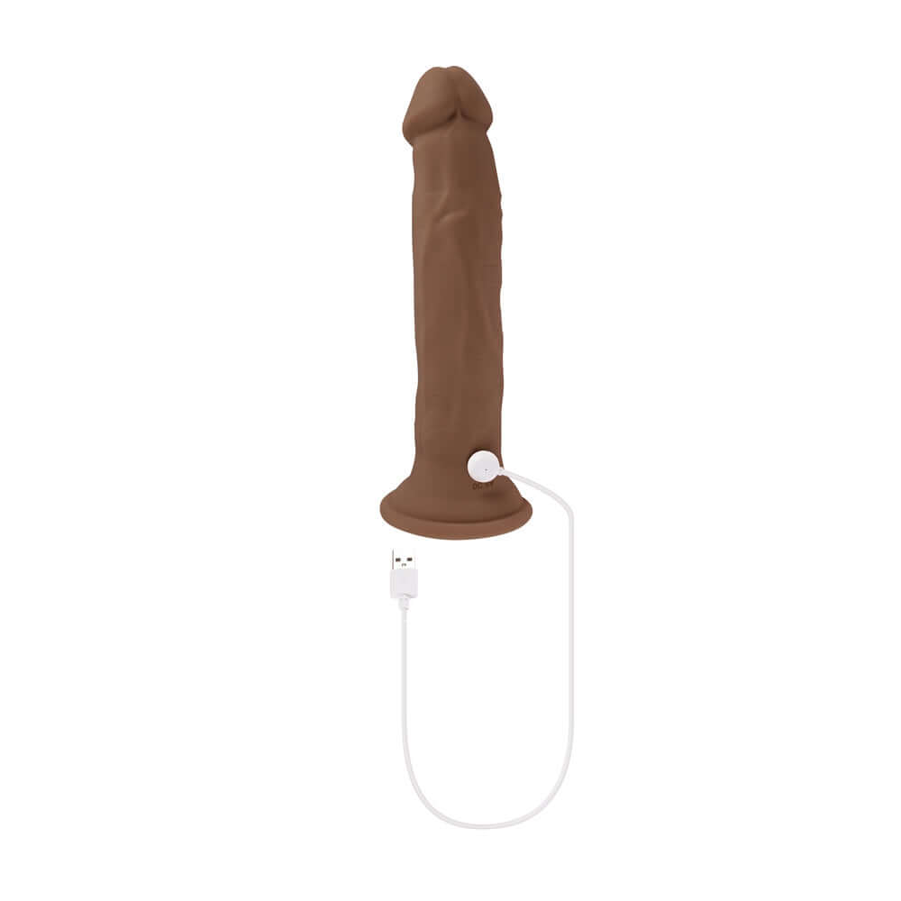 Trust the thrust and robust vibrations of this silicone shaft that operates  hands-free with a remote control and a powerful suction cup base. Realistic  vein textures and a crown-ridged tapered tip are crafted with a firm yet supple dual-layered material for a delicious life-like feel.