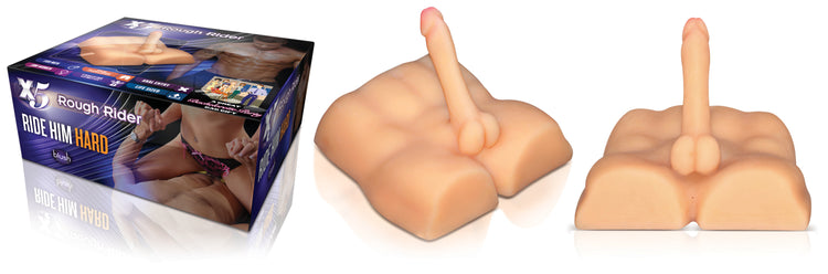 Rough Rider is a life sized pleasure doll. Its very unique product that can be used by both men and women. Its penis features a proprietary Sensa feel Dual Density technology and Multi-flex technology for a realistic and satisfying experience. Anal opening for women who has a desire to use a strap on a man. Or for the gay male who wants a partner that provides pleasure anytime he wants. Rough Rider makes a great gag gift. Especially for Bachelorette Parties. Dildo is 8-inches long and 1.5-inches wide.