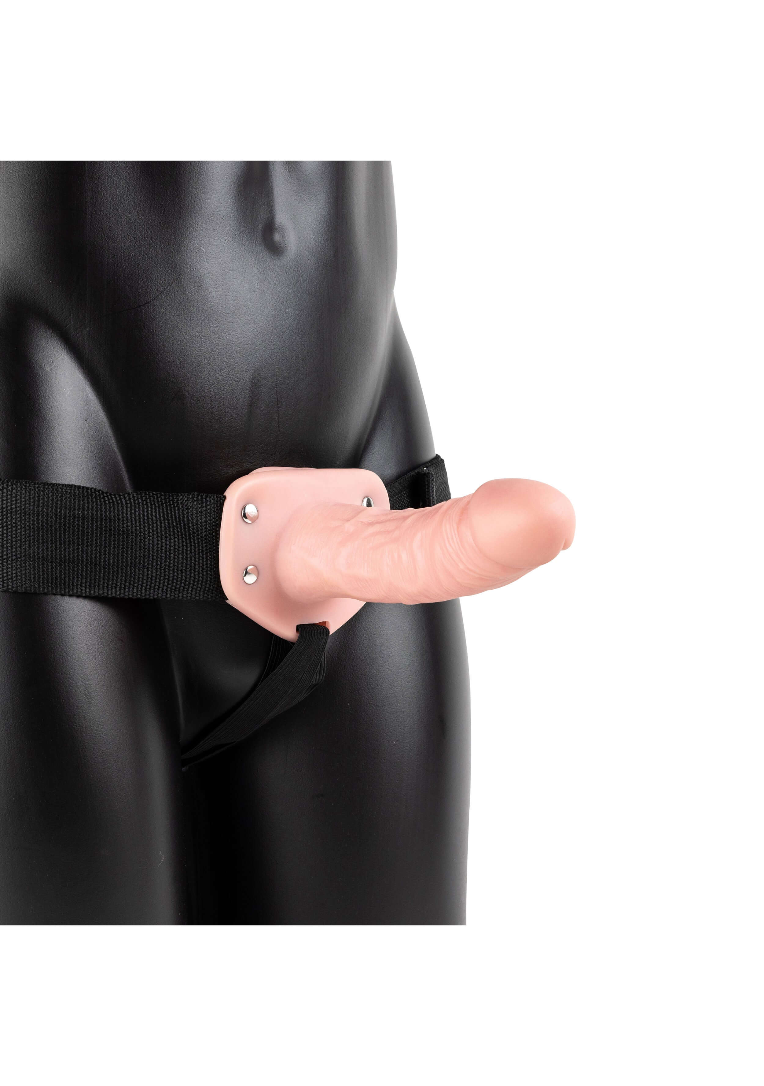 Be the RealRock Star that you've always wanted to be with this Vibrating RealRock Hollow Strap-On! This gear will give you extra girth and length, help you last longer, reduce premature ejaculation, help you perform even if you have erectile dysfunction and never disappoint your partner ever again. The Strap-On is adjustable, so it will fit any body shape. The waistband is comfortable, so it won't move while you show your best moves. This model has a multi-speed vibrator that will please you in all the right places. The controller can be clipped to the waistband, so you don't have to worry about where to put it (hands free). The dildo of this Strap-On has a realistic look and feel to it, resulting in an experience that can't be distinguished from the real deal. So, it's time to buckle up and get ready to rock!