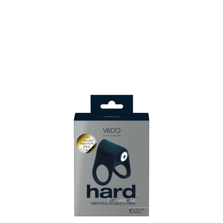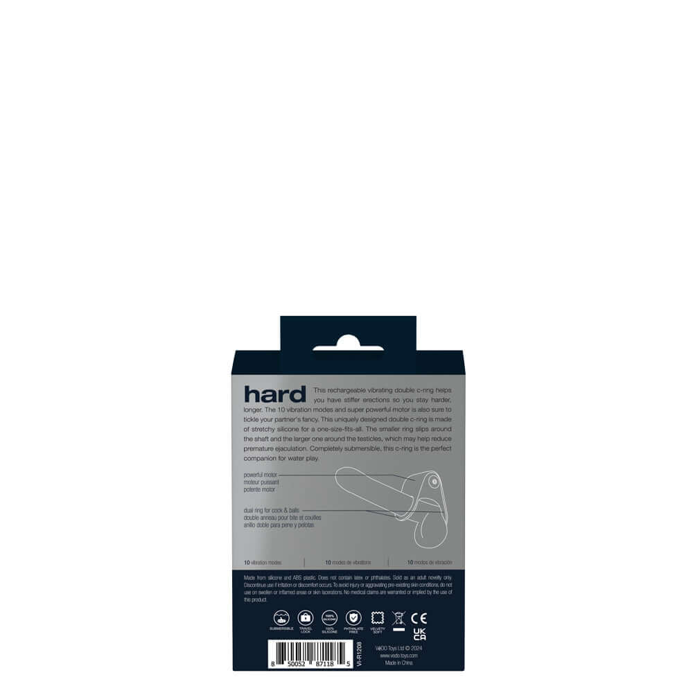 This rechargeable vibrating double C-Ring helps you have stiffer erections so you stay harder, longer. The 10 vibration modes and super powerful motor is also sure to tickle your partner's fancy. This uniquely designed double c-ring is made of stretchy silicone for a one-size-fits-all. The smaller ring slips around the shaft and the larger one around the testicles, which may help reduce premature ejaculation. Completely submersible, this c-ring is the perfect companion for water play.