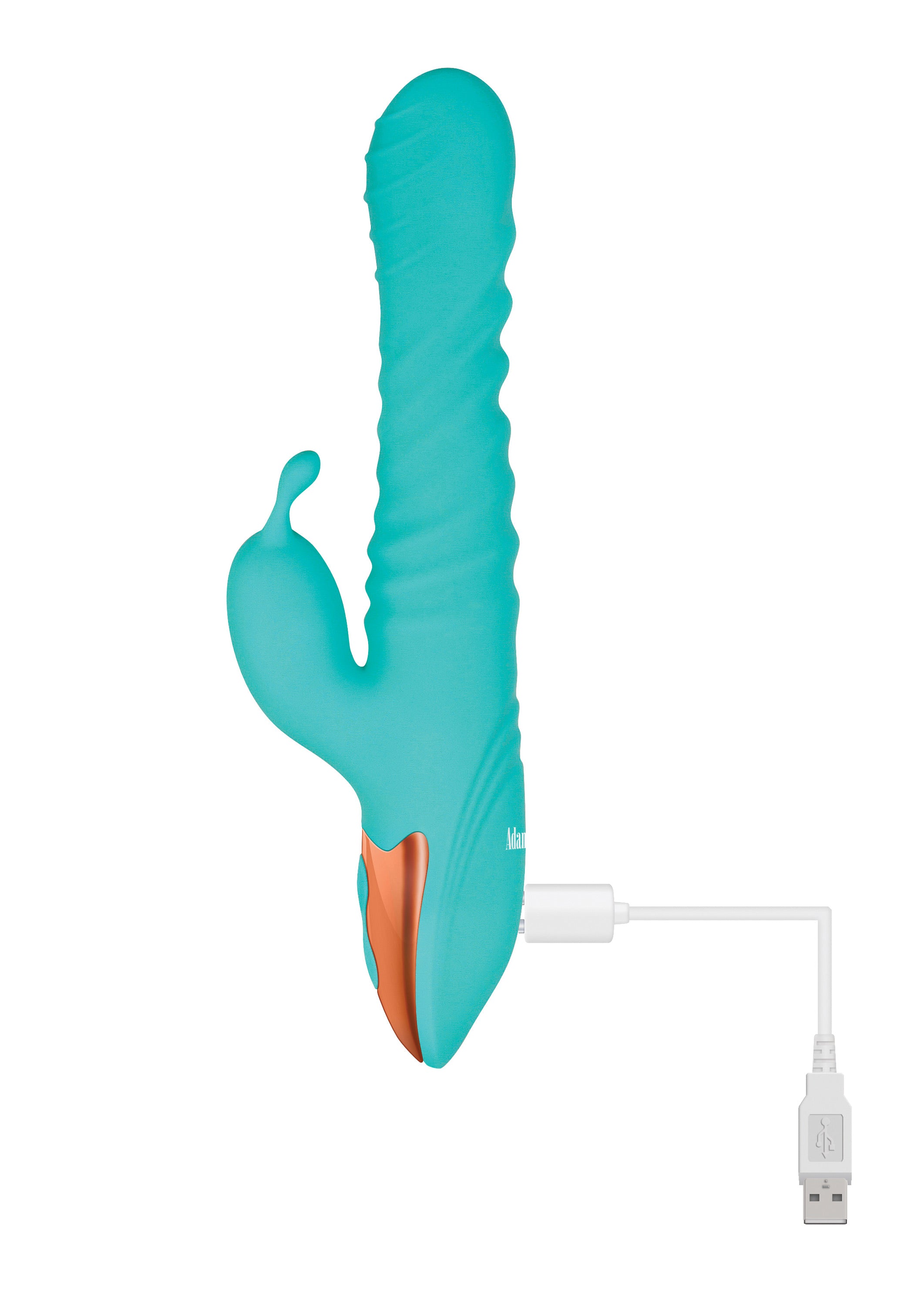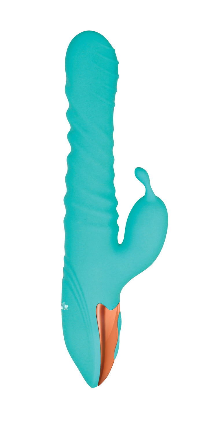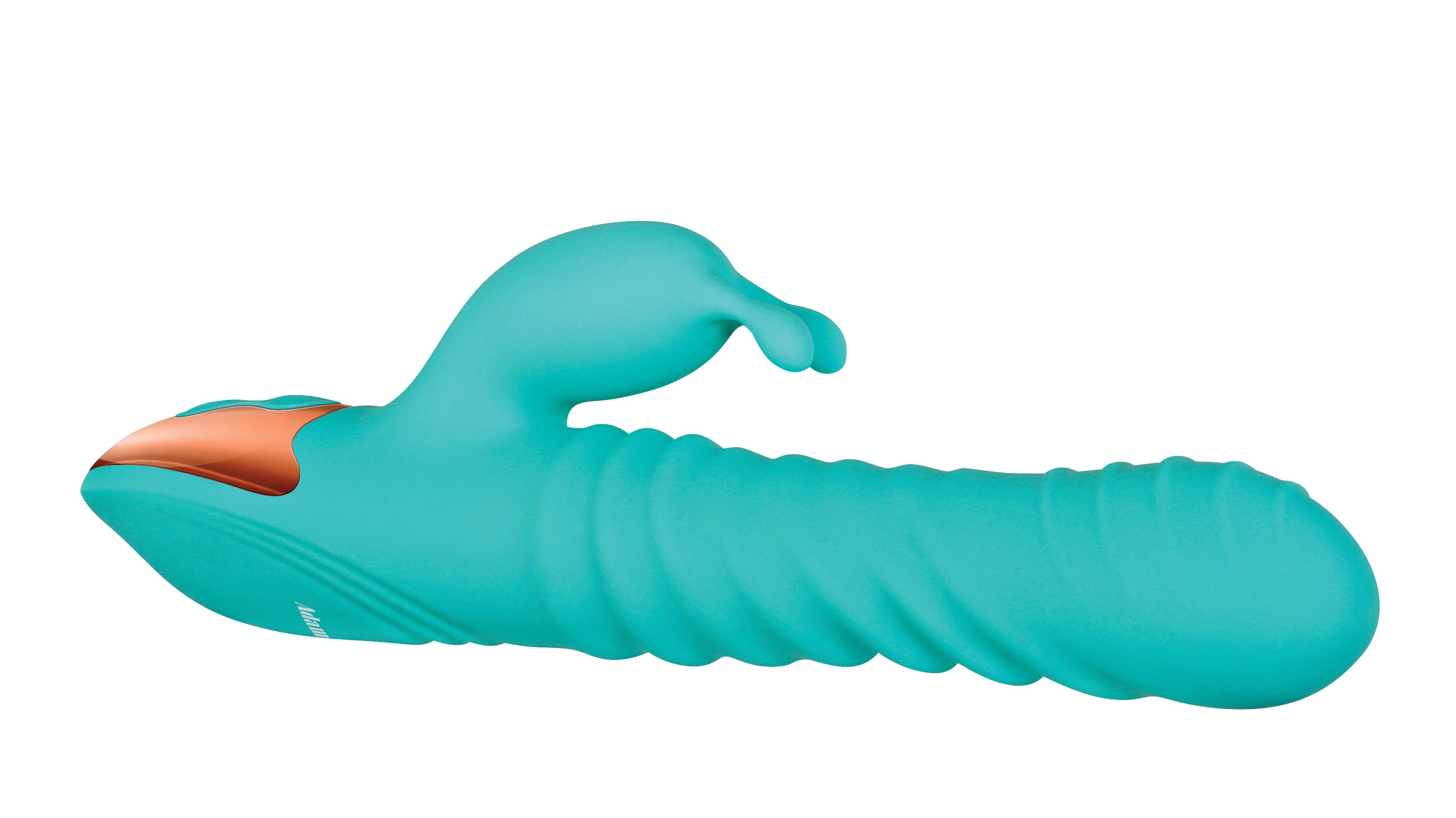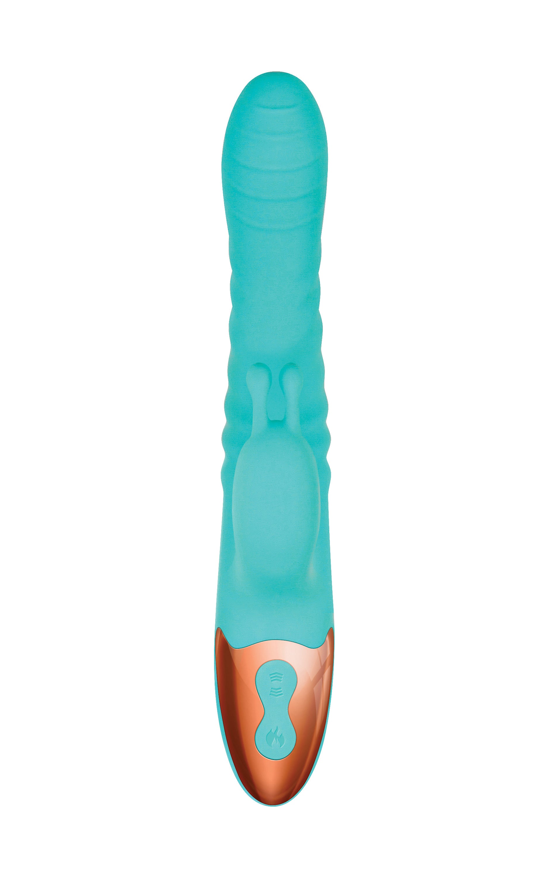 Heat up your intimate play with wild warming, thrusting, and vibration! This naughty rechargeable rabbit boasts two powerful motors that both send blissful vibration right to your clit & G-Spot. The ridged shaft feels so good as it thrusts in up to 0.5" (1.27 cm) deep! Turn on indulgent, toe-curling warmth and let its oh-so-real feel sweep you over the edge into ecstasy. Waterproof & submersible for pleasure in the bath and shower.