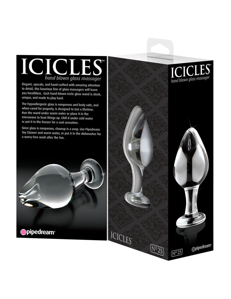Elegant upscale and hand-crafted with amazing attention to detail this luxurious line of glass massagers will leave you breathless. Each hand-blown Icicle glass is sleek and unique and made to play hard. The hypoallergenice glass is nonporous and body safe and when cared properly is designed to last a lifetime. Run the wand under warm water or place it in the microwave to heat things up. Chill it under cold water or put it in the freezer for a cool sensation.