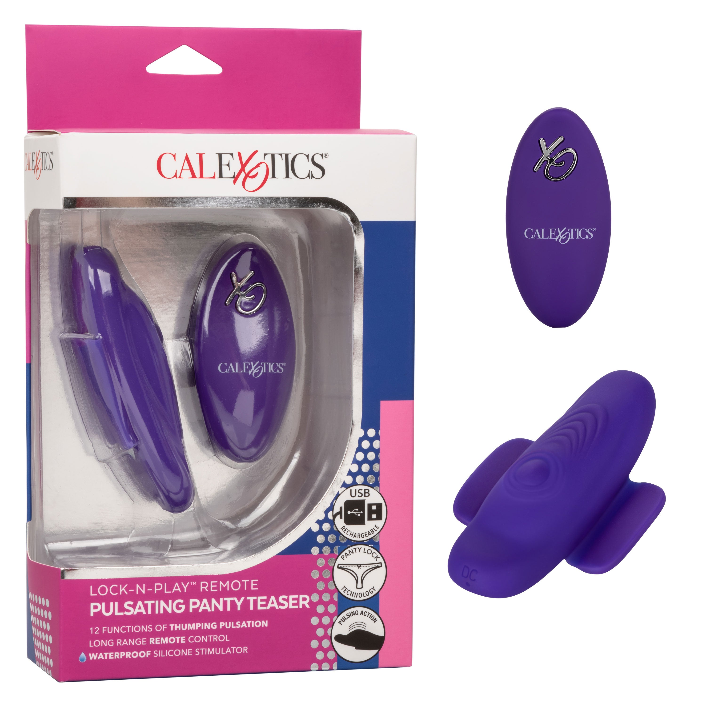 The Lock-N-Play™ Remote Pulsating Panty Teaser is a pulsating panty teaser paired with a playfully mini remote for adventurous pleasure seekers. To keep the perfect placement through even the most active playtime, the panty teaser has magnetic tab wings to securely attach to almost any panty. The discreet remote makes it easy for you or your lover to control vibration intensity with the touch of a button. Whenever or wherever passion takes you, this passionate panty vibrator’s 32-foot radius range and 12 intense functions of pulsation are ready for playtime.