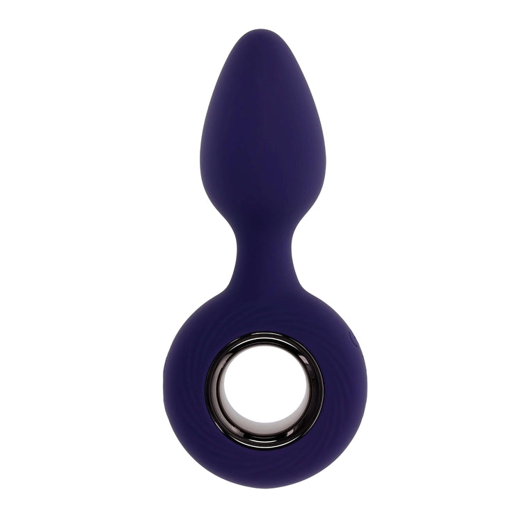 This powerful vibrating plug features a ringed handle for precise, comfortable navigation. The friendly egg shape is designed for easy entry with a tapered tip that swells to a satisfying girth before narrowing again, finishing with the round ringed handle that doubles as a safety base.