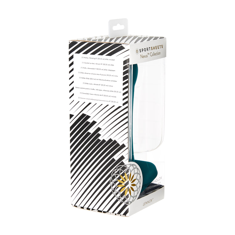 Lennox is a phthalate-free, non-porous, hypoallergenic, 8 inch hollow vibrating silicone sheath dildo.