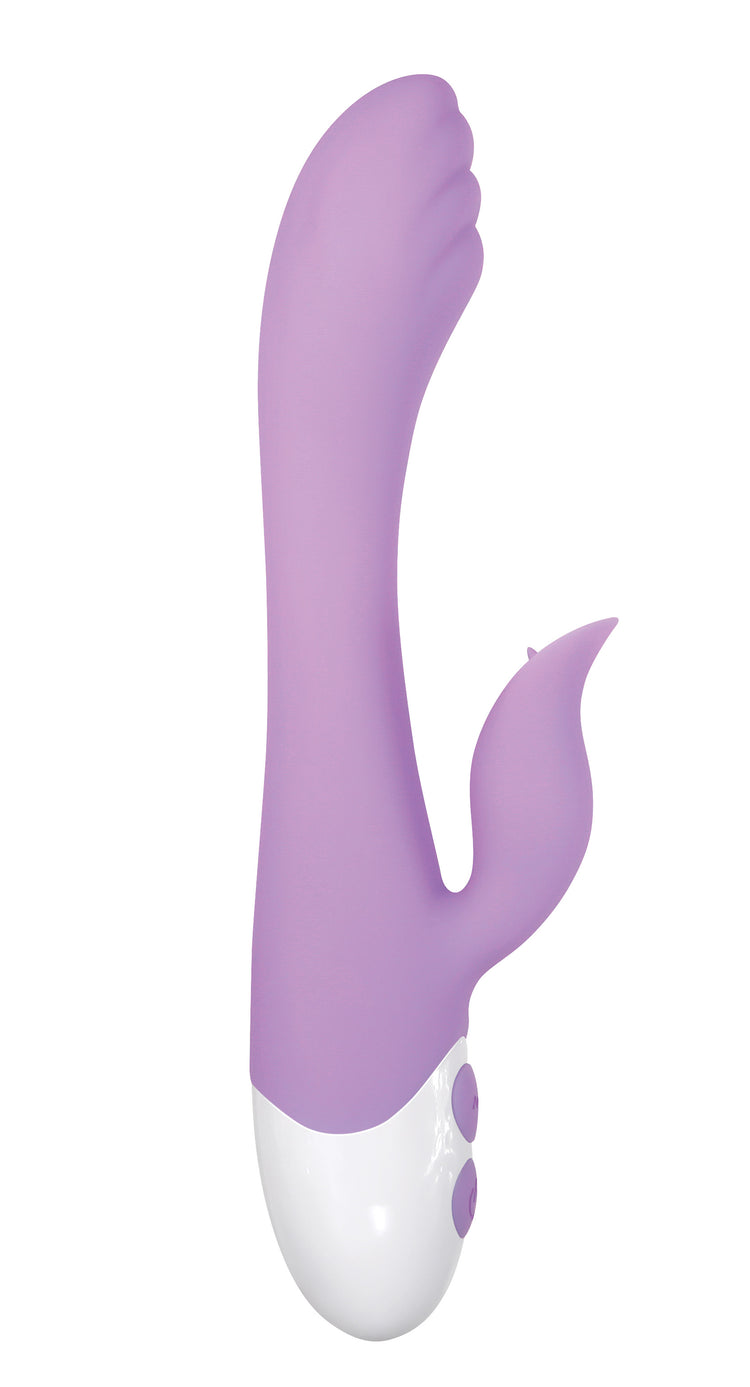 Let your fantasies take over with this creamy smooth silicone vibe that curves gently with a deeply textured oval head. Enjoy the bulbous tip and flexible slender shaft that moves with your body as the multi-speed motor keeps up with your every desire. Find another 10 speeds of glory in the smaller petal-shaped shaft that features a tongue in the center - designed to target your most sensitive areas. It licks its heart out at the exact speed you command as you customize your experience by using each motor independently. Completely water submersible and easy to clean.