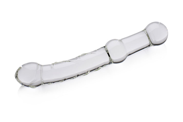 The Prana Thrusting Wand is the seed of rapture that blossoms into Utopia! This perfectly smooth glass probe features a gently pointed tip that glides in smooth during insertion along with raised pleasure buds on the shaft for accented texture and stimulation. Prana has elegant curves that reach your most sensitive spots for an unsurpassed orgasmic experience. Heighten your sex play by using Prana warm or chilled.