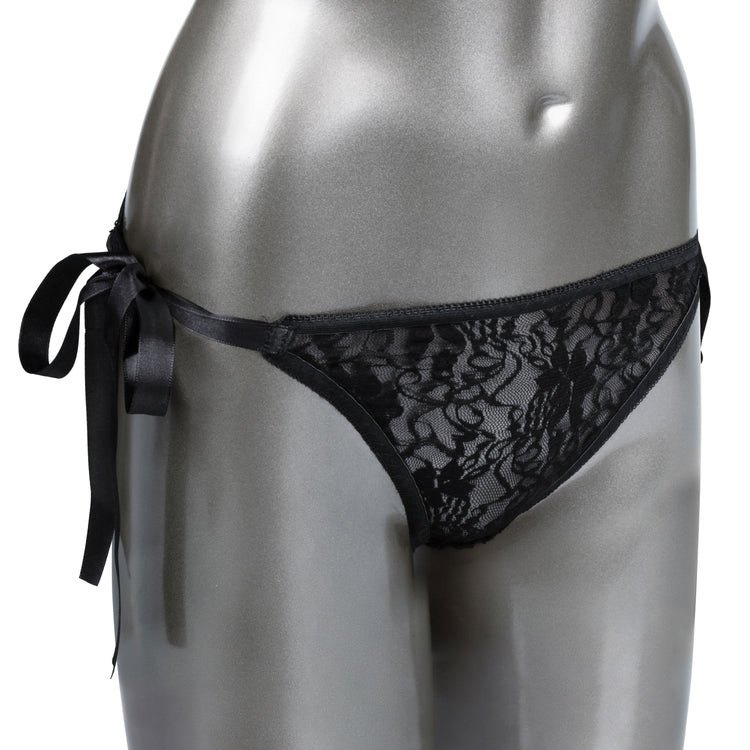 • Stretch-to-Fit Lace Thong with Adjustable Satin Ties