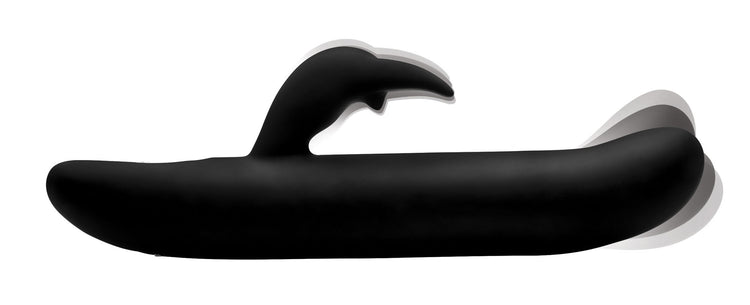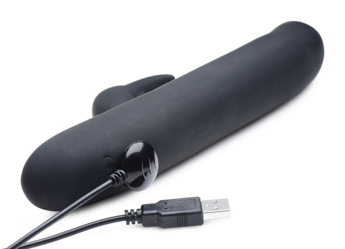 Experience a blended orgasm from the blissfully buzzing bunny against your clitoris and the smooth-as-silk shaft that simulates a Come-Hither motion against your sweet spot. This premium silicone vibrator features 3 speeds of thrumming and 7 patterns of throbbing, as well as an ample shaft that flexes up and down to stroke your G-spot with 3 speeds of its own. The elegant gem-adorned control panel is simple to use. A protruding bunny nose will pinpoint your clit for vibration, while the ears will flutter around it for an entirely different sensation. This pleasure tool is magnetically rechargeable and waterproof so that you can treat yourself in the bath or shower. The phthalate-free material is non-porous for an easy clean with mild soap or toy leaner. Avoid use with silicone lubricants.