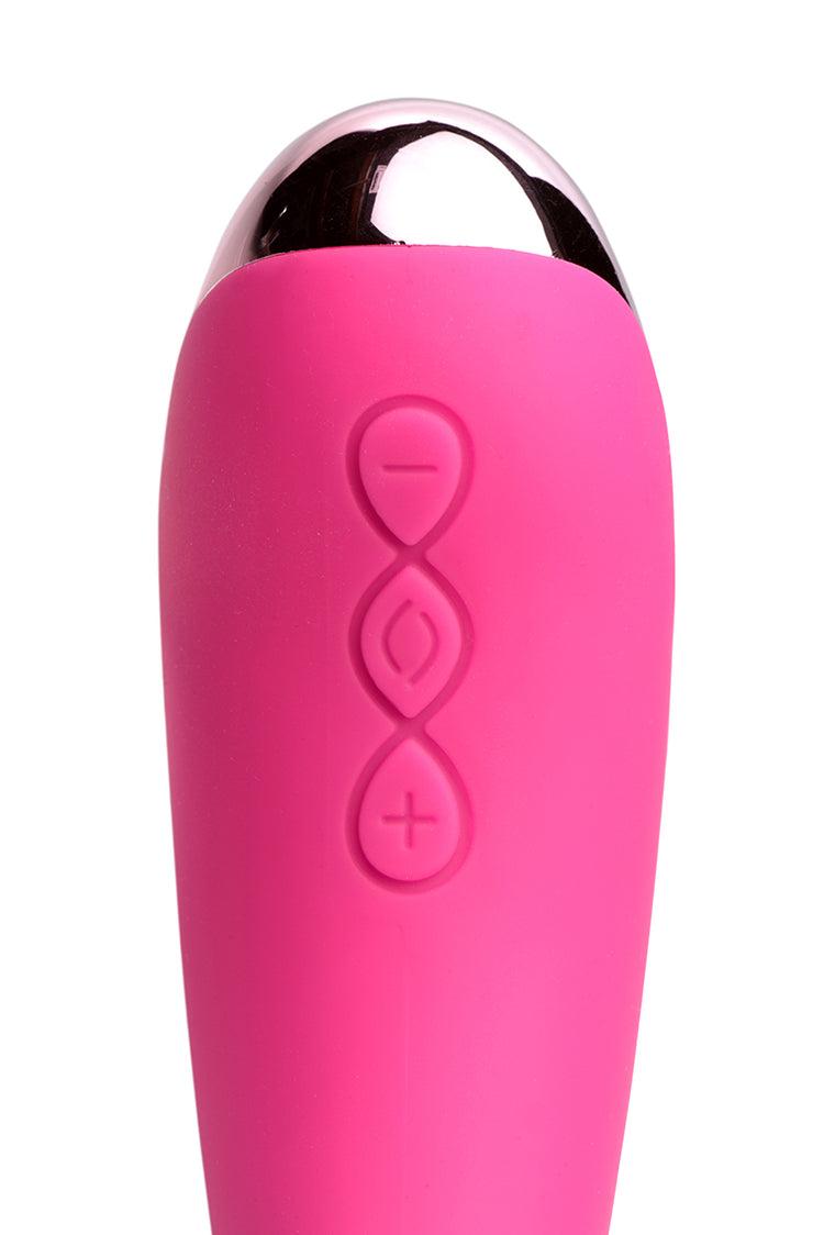 This luxurious wand is designed for intense G-spot stimulation! Featuring 50 different vibration patterns for you to enjoy - choose from 5 speeds and 10 patterns of buzzing to please you or your lover. Start off slow at a low power and gentle pattern, and turn up the power as you edge closer to the big O you deserve! This wand is perfectly curved to hit just the right spot, with a wide surface area tip to buzz and rub every inch of your g-spot.