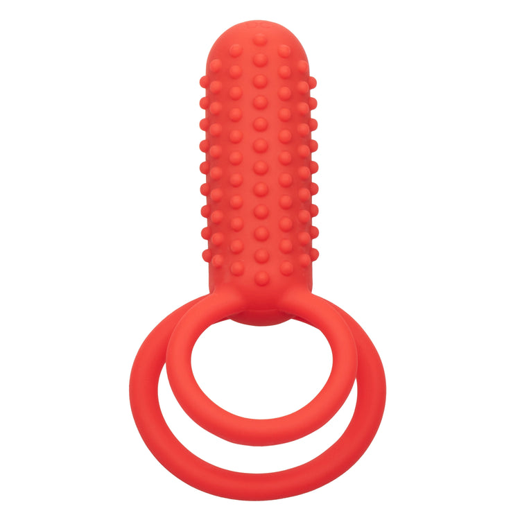 The CalExotics Silicone Rechargeable Vertical Dual Enhancer mixes 12 intense functions of vibration, a vertical teaser, and dual support rings for powerful knee-shaking pleasure. This dual stimulator ring is great for beginners looking to spice things up or erotic experts looking to add intense pleasure to their arsenal.