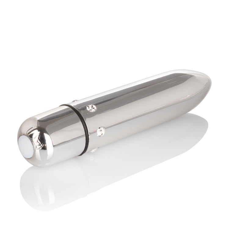 Smooth seamless and discreet bullets adorned with fine white crystals Incredibly intense power Whisper quiet New incremental speed control Luminous light Instant off feature