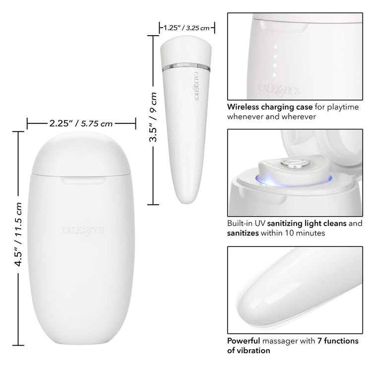 No more messy cords or cables, this massager is the first of its kind with a wireless charging case with magnetic connection. Simply drop the massager into the case to recharge a fully drained bullet up to 2 times. With 7 functions of powerful vibration, pulsation, and escalation, this sleek massager will transport you to a paradise of pleasure.