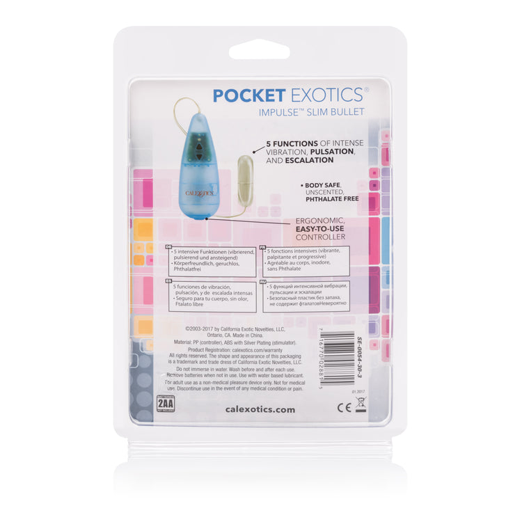 The discreetly sized Pocket Exotics Impulse Silver Slim Bullet is a compact personal massager that boasts 5 intensely powerful vibration and pulsation functions. The ultra sleek and slim bullet shaped stimulator is designed for erotic exploration and sensual satisfaction and is ideal for intimate play wherever you go.