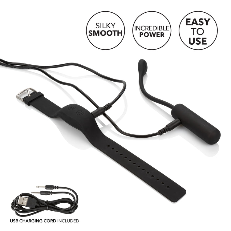 The Wristband Remote Petite Bullet is a powerfully mini vibrator paired with a playfully discreet wristband controller for adventurous pleasure seekers. The stylish, yet discreet wristband controller makes it easy for you or your lover to control vibration intensity with the touch of a button. Whenever or wherever passion takes you, this passionate panty vibrator's 32.5-foot radius range and 12 intense functions of vibration are ready for playtime.