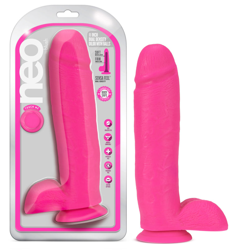The Neo 11 Inch (27.94 cm) Dual Density Dildo is here to bring some brightness to your playtime! Sculpted to look and feel lifelike, Neo also has a powerful suction cup base for hands-free play and is harness compatible for partnered adventures. Sensa Feel dual density allows this dildo to have a firm inside that keeps it rigid for penetration and a soft, realistic outside. Made from non porous PVC, Neo 11 Inch (27.94 cm) Dual Density Dildo contains no fragrances, phthalates, paraffins, or latex.