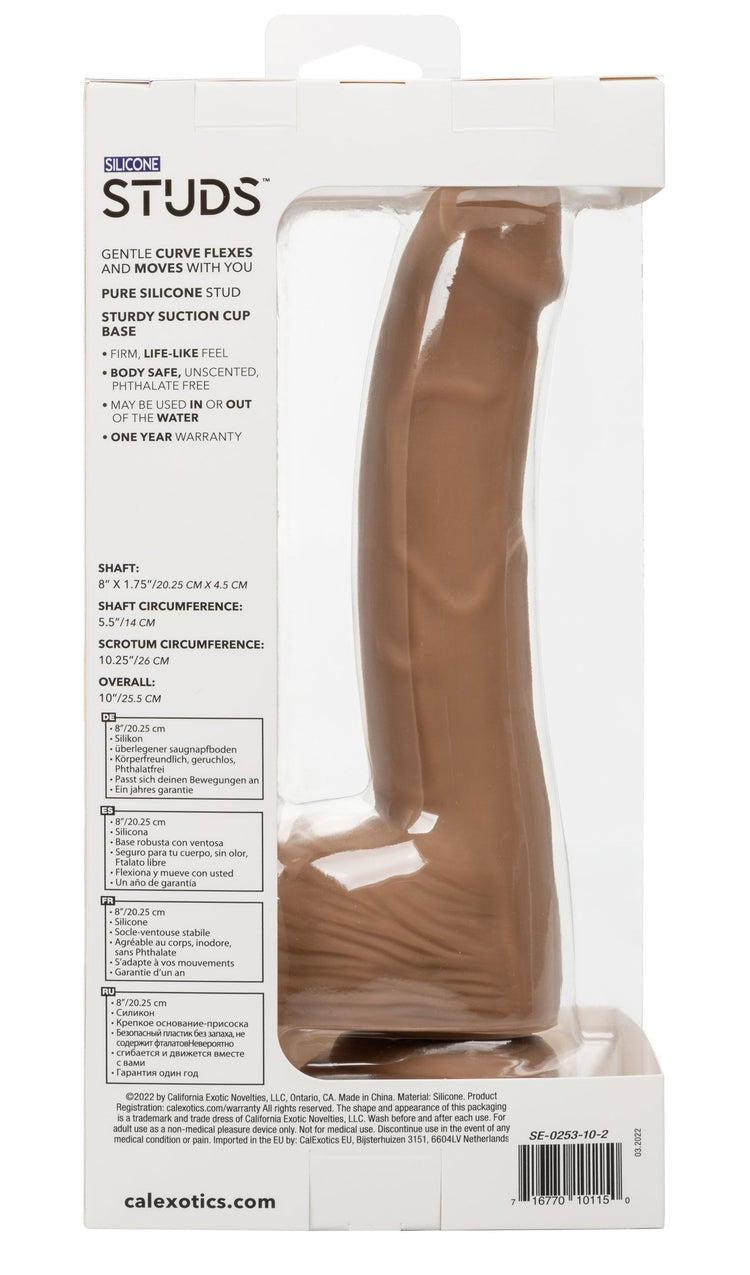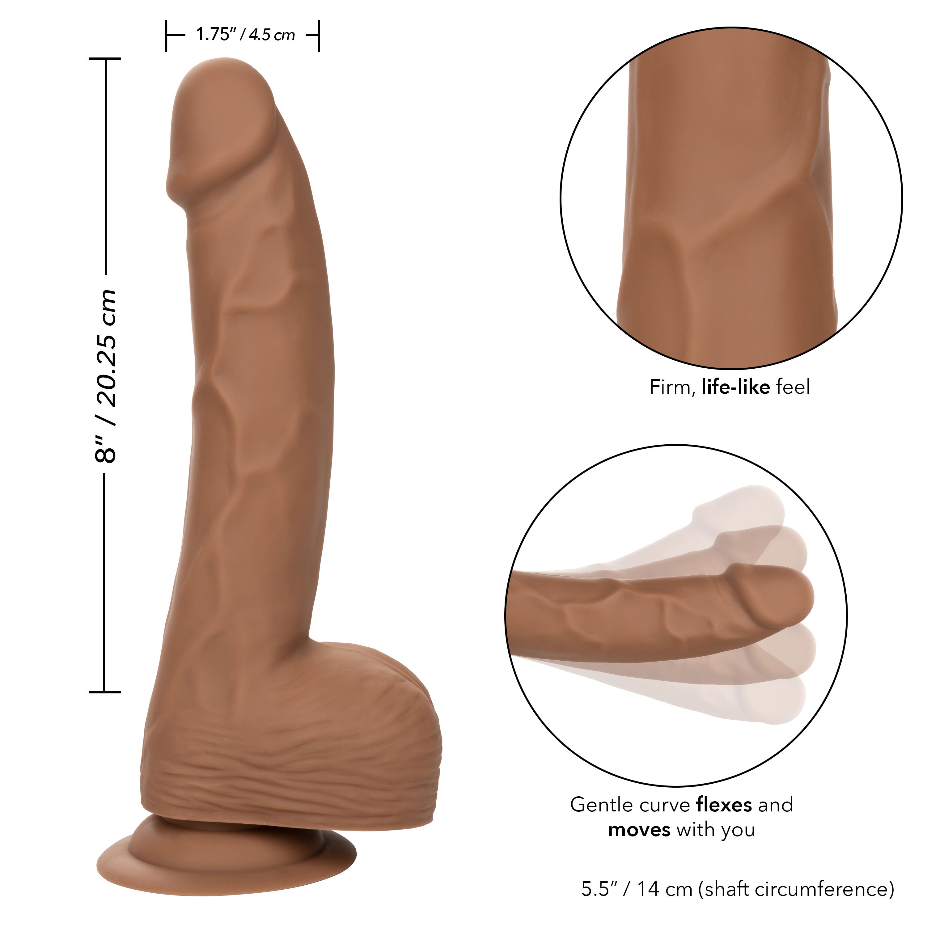 (20.25 cm) has arrived to deliver a pounding experience fit for any size queen. The real-feel dong is crafted with an ample 8-inch (20.25 cm) shaft, realistic flexible design, and suction cup base. Deliver the pleasure you've been craving with a 8-inch (20.25 cm) long dong with sensual tip, textured shaft, and life-like balls. The textured shaft has a firm, yet flexible feel sure to deliver a truly realistic penetration experience. The flanged base has a sturdy suction cup that can be used in a harness or mounted to a flat surface for sensational hands-free fun.