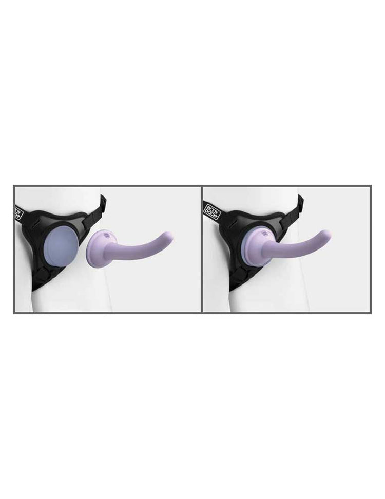 The patented Body Dock SE Universal Harness System is the easiest, most comfortable Body Dock that's made! It’s as simple as attaching the suction cup on this platinum silicone Dillio dildo to the silicone docking plate. No rings. No snaps. No hassle. Best of all, it works with most dildos on the market today today, including some you already own.