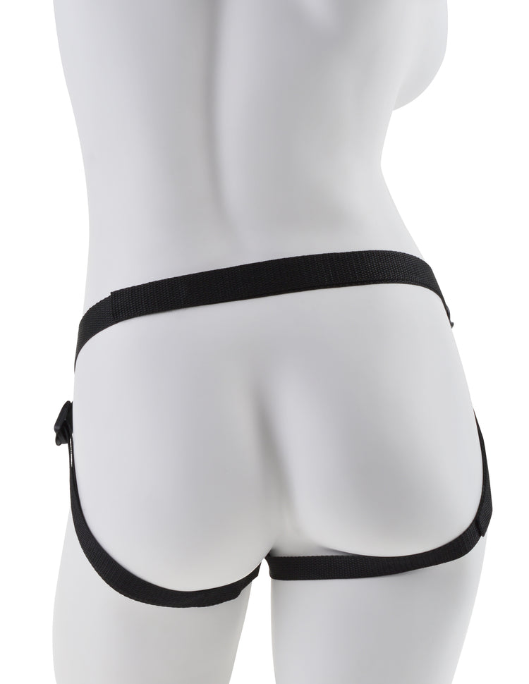 Hit the right spot every time with this elegant Stap-On. This low-rise harness features a soft plush liner that feels great against your skin while this 4-way nylon straps are fully adjustable to fit most sizes. The metal O-ring holds everything in place when the action heats up and can be removed to accommodate any sized O-ring. The 7-inch phthalate free dildo features a realistic shape and textures that feel even better than the real thing. The tapered tip eases insertion while the life-like veiny texture will drive your lover wild. The suction-cup base keeps it snug in place but can also be removed from the harness for a wall-banging good time.