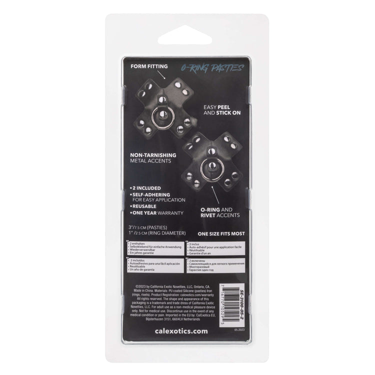 Introducing the Euphoria Collection O-Ring Pasties, the perfect accessory to elevate your sensual style and explore your fantasies. These alluring pasties feature a captivating design with O-ring and rivet accents, adding a touch of edgy sophistication to your intimate moments.