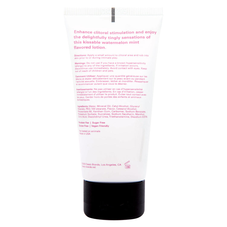 Enhance clitoral stimulation and enjoy the delightfully tingly sensations of this kissable watermelon lotion.