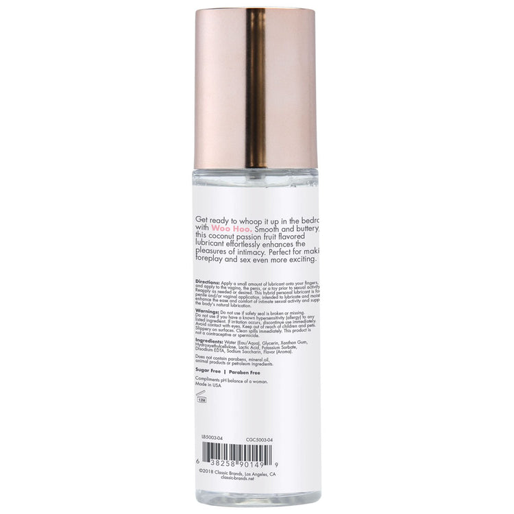Get ready to whoop it up in the bedroom with Woo Hoo. Smooth and buttery, this coconut passion fruit flavored lubricant effortlessly enhances the pleasures of intimacy. Perfect for making foreplay and sex even more exciting.