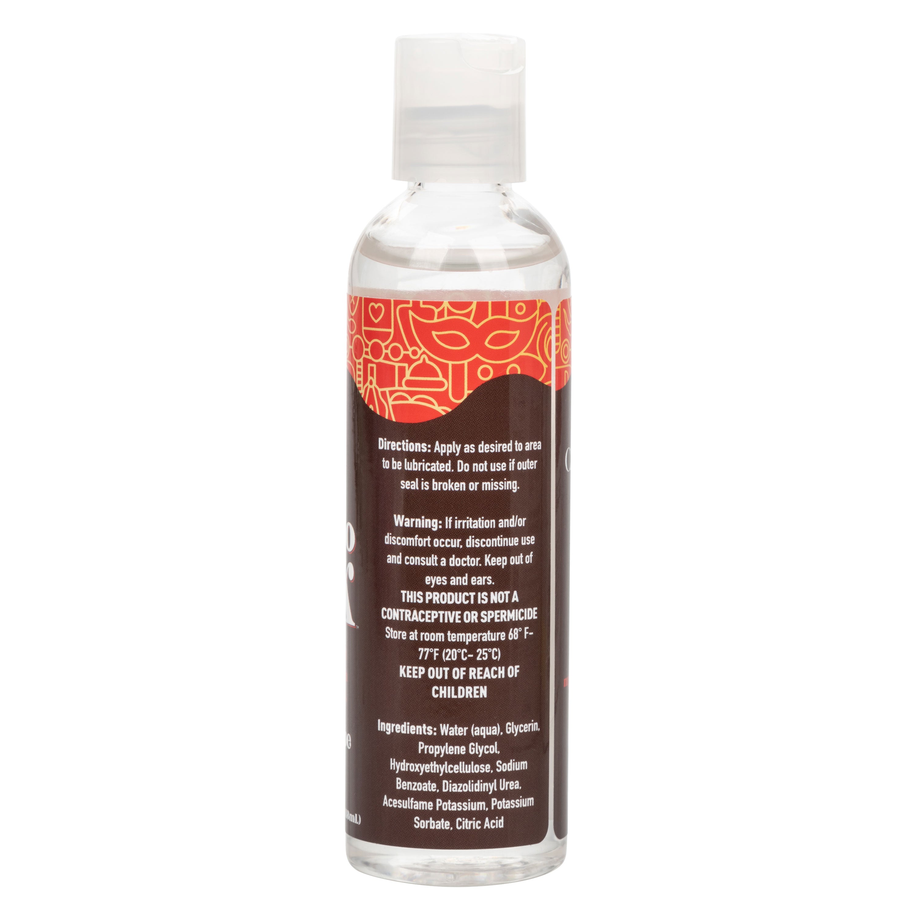 Ingredients: Water(agua), Glycerin, Propylene Glycol, Hydroxyethlcellulose, Sodium Benzoate, Diazolidinyl Urea, Acesulfame Potassium, Potassium Sorbate,  Citric Acid.