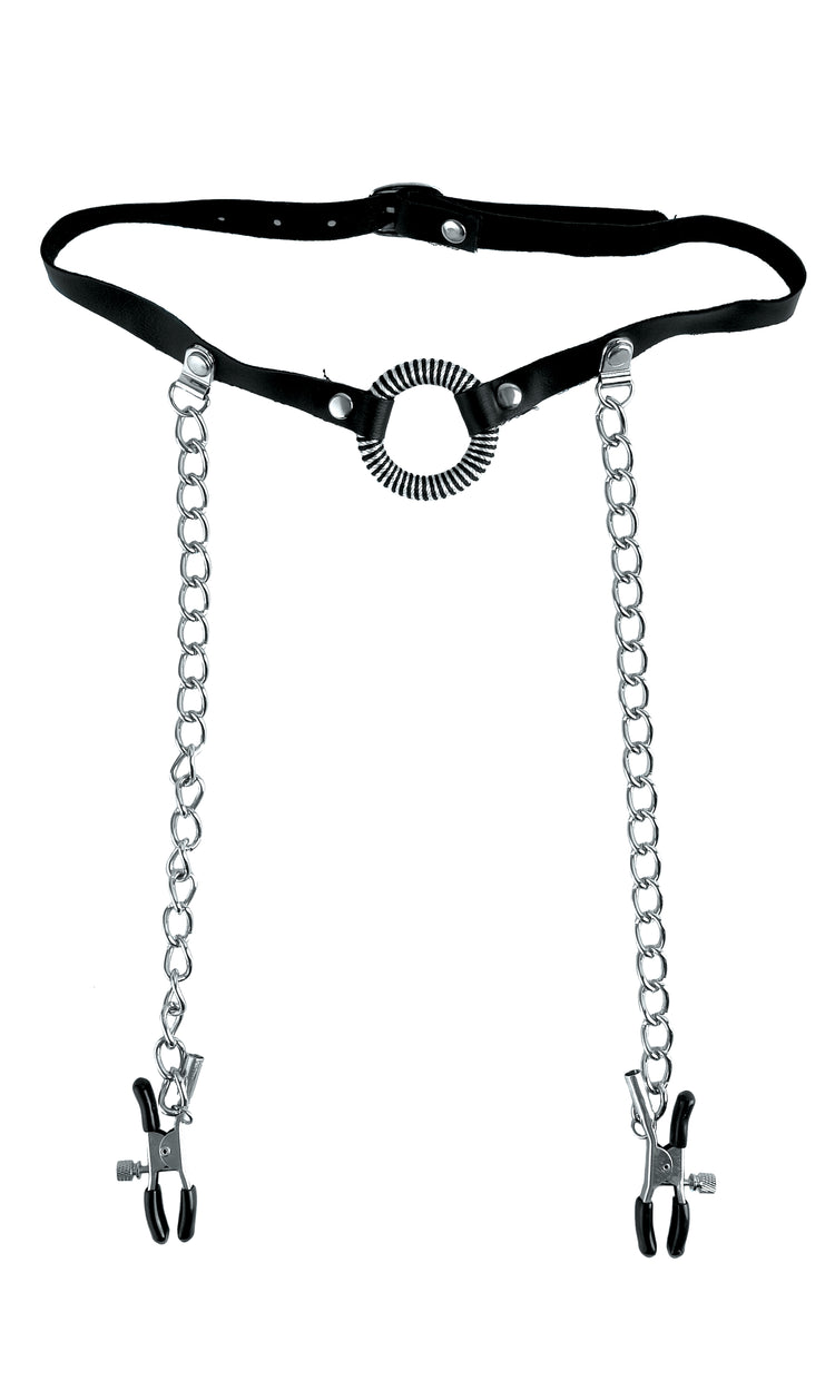 Get your lover to open wide and say "Ahhh" with this naughty O-Ring Gag with Nipple Clamps.