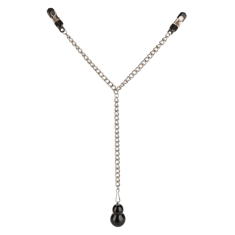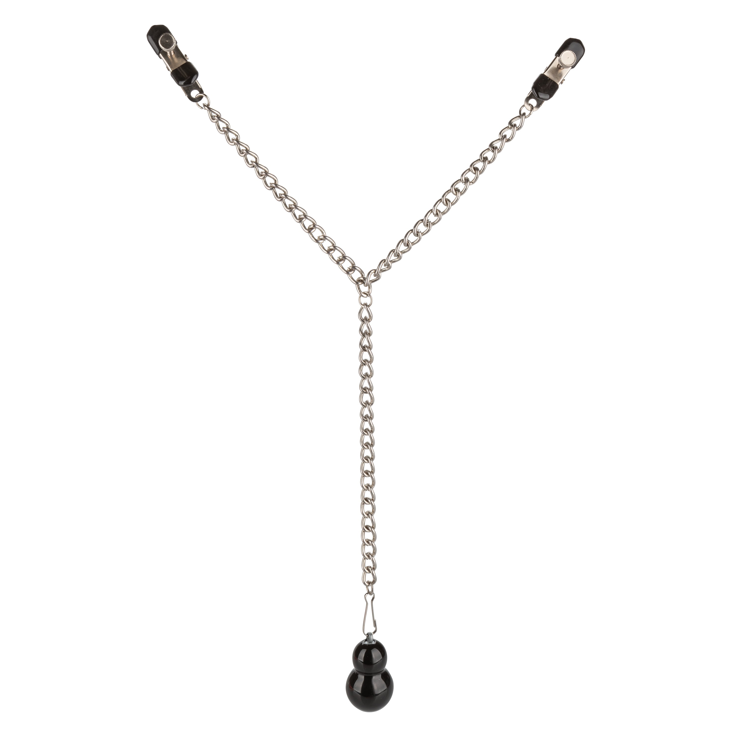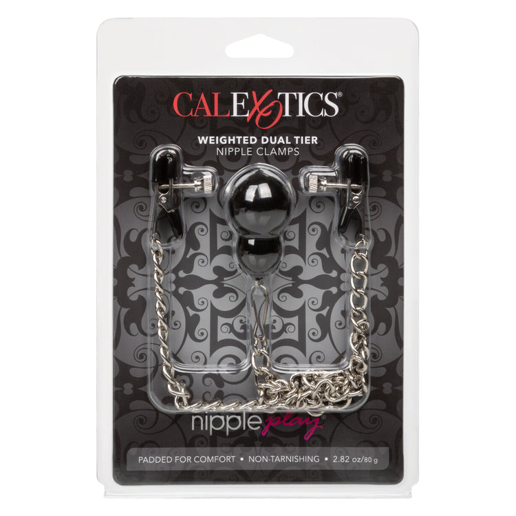 Blur the borders between pleasure and pain even further with the game-changing Nipple Play® Weighted Dual Tier Nipple Clamps. Explore elevated sensation with 2 adjustable nipple clamps, a thrilling chain and unique weight. Clamp the naughty clasps to your body and enjoy every rush of stimulation.