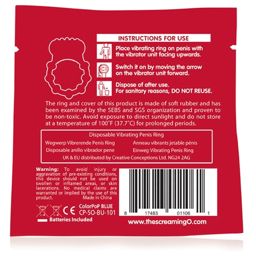 The Screaming O Vibrating Ring is the award-winning sex secret that helps couples have better more satisfying sex. With pleasure knobs for him and ticklers for her couples enjoy mutual stimulation with vibration that buzzes throughout the entire ring. Now available as a convenient ColorPoP Quickie couples can enjoy vibrant vibration at home or on the go with a disposable design they can take anywhere.