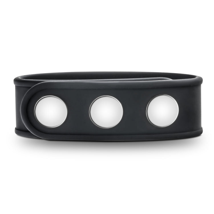 Extend your pleasure and your erectile power with this simple, smooth Silicone 3-Snap Cock Strap. Easy to put on, easy to release; simply snap it around the base of your cock. The flat, stretchy, comfortable, body safe silicone stays where you put it and holds your engorgement. The 3 snaps allow for universal fit and ensure both stamina and extended partner play Stay harder longer and enjoy a more intense orgasm. Nickle free hardware. Wash with warm, soapy water.