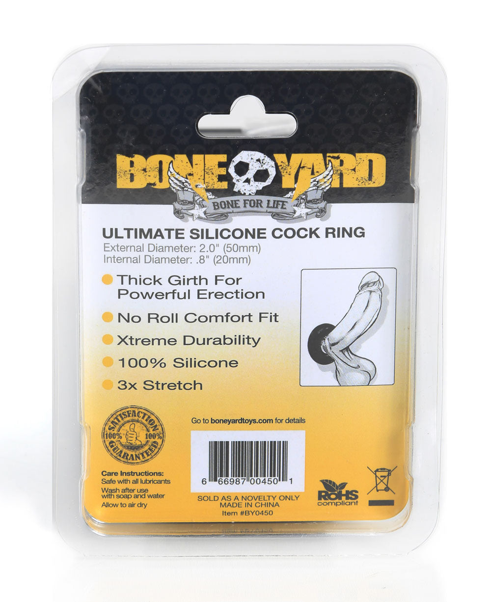 The Boneyard Ultimate Silicone Cock Ring is the must-have man toy for every man’s arsenal. The premium donut shaped ring is designed with superior materials and production thus increasing both comfort and lifespan. The powerful and iconic Boneyard-branded design has a sleek soft touch silicone finish and features a superior and durable stretch.